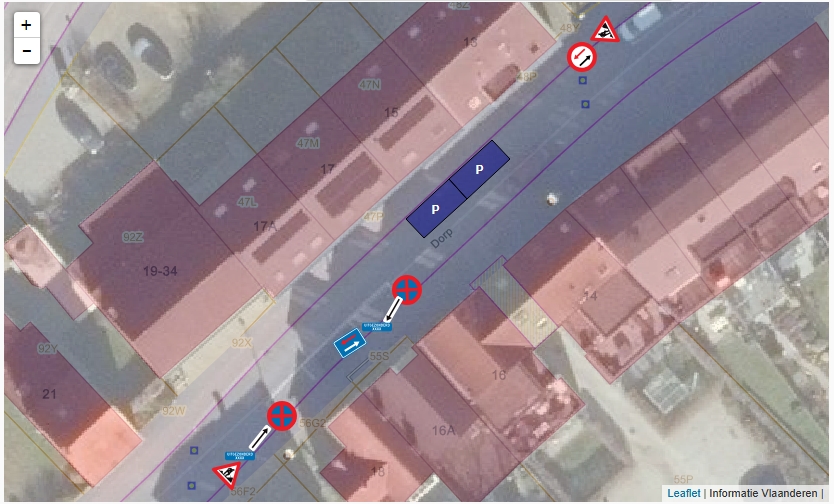 ● Het tijdelijk parkeerverbod zal worden ingevoerd op 3 parkeervakken ter hoogte van Dorp 16.