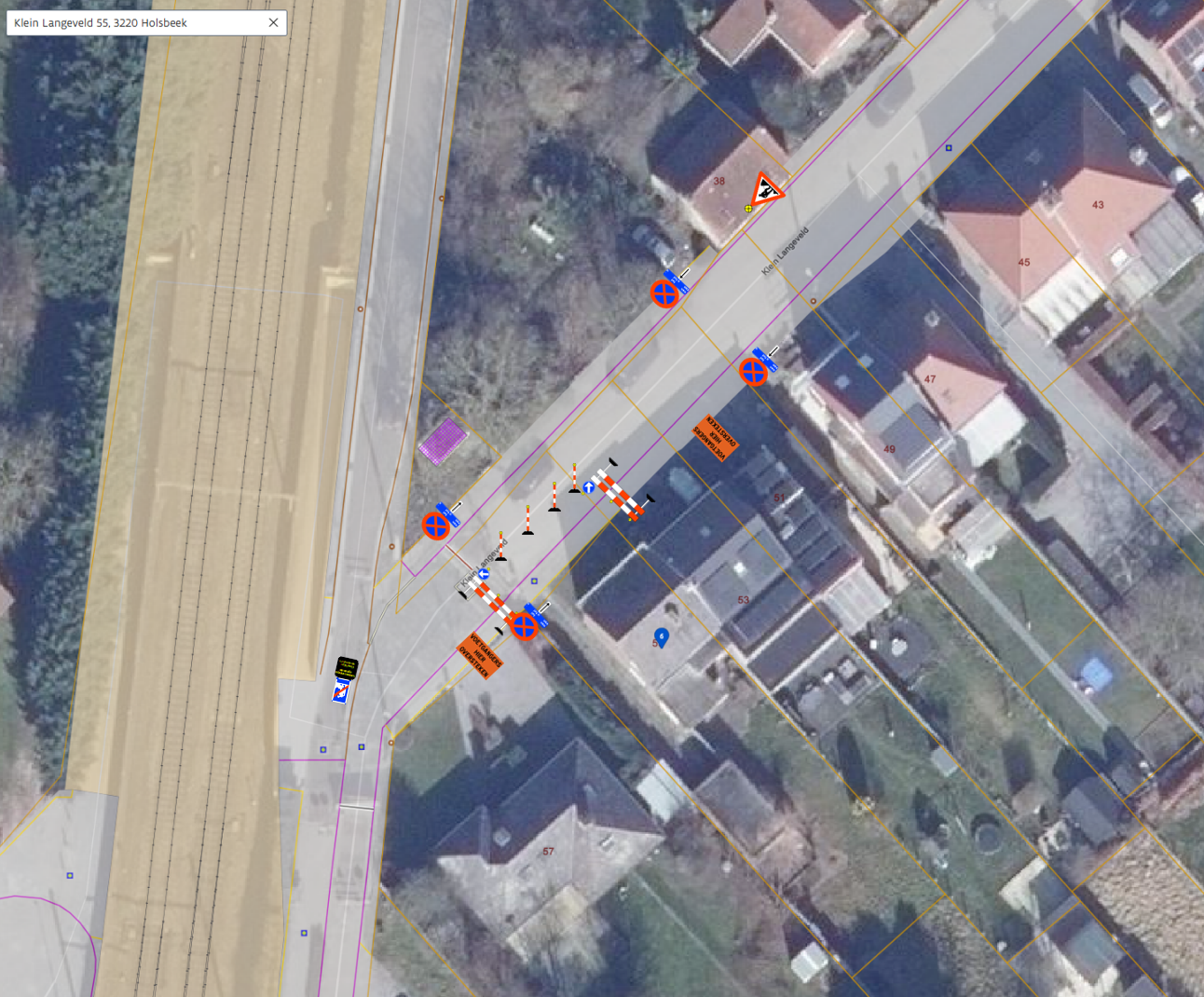 ● De werken worden uitgevoerd langs Klein Langeveld 55.